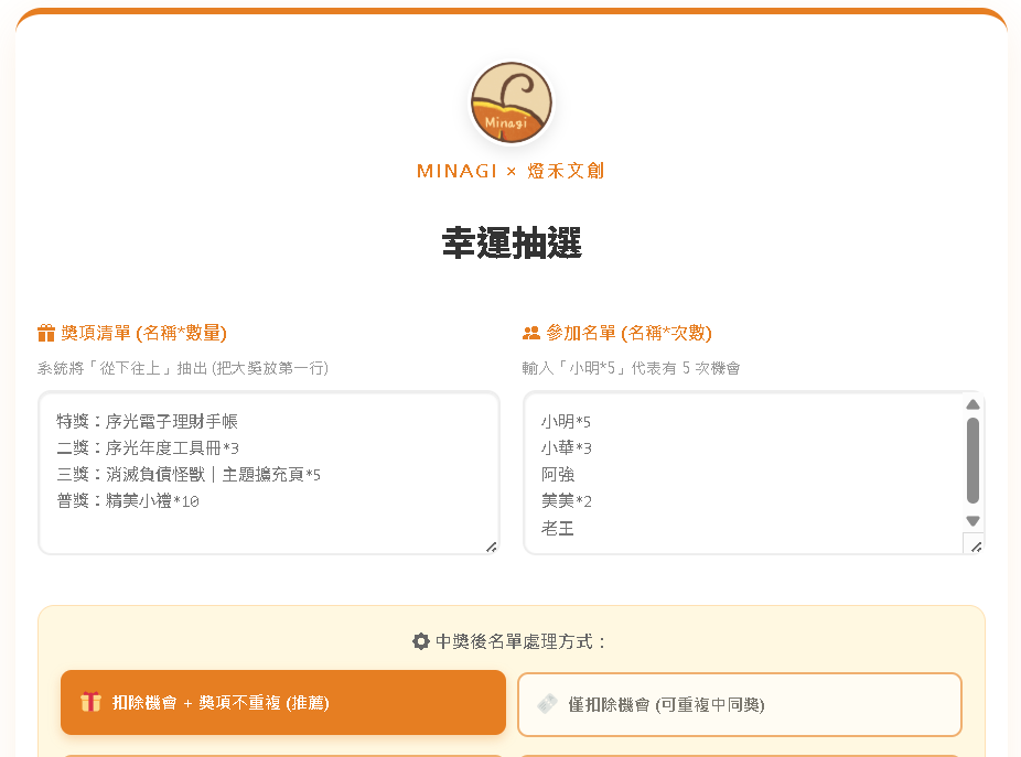 建立抽選名單,適合活動、社群與日常使用。
