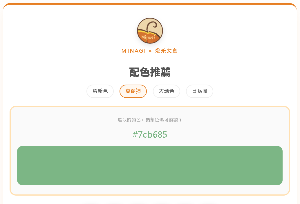 提供清新色、莫蘭迪、大地色、日系風等配色風格。